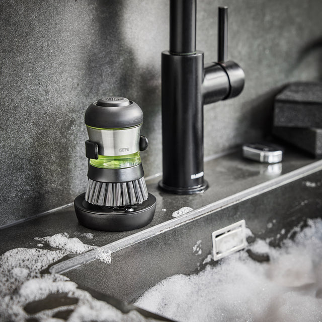 Четка за миене на съдове с отцедник SWIFT черно/сребристо