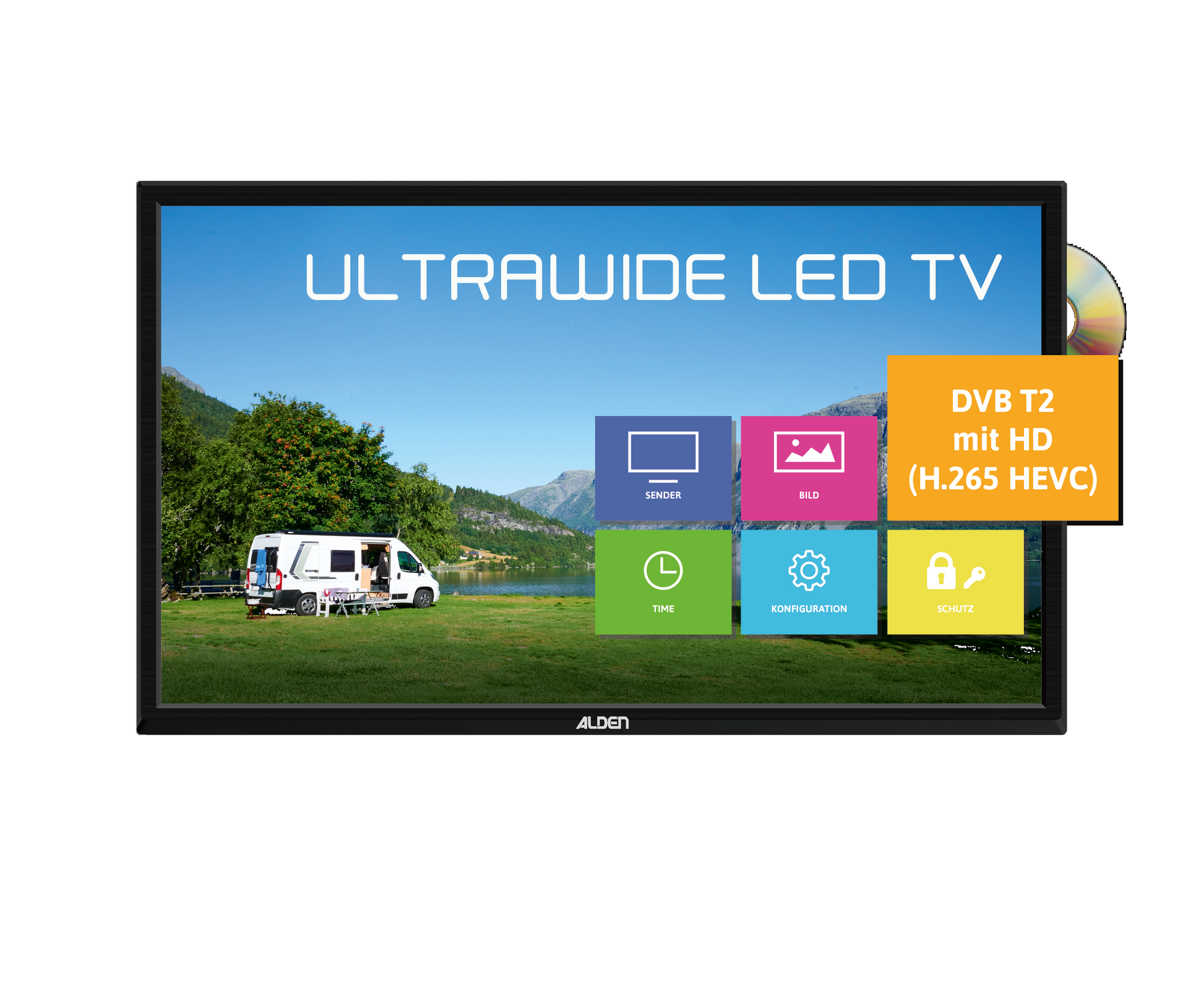 Напълно автоматична сателитна система ALDEN AS2 80 HD Platinium, включително модул за управление S.S.C.® HD и Ultrawide LED TV 18.5. Макс. напрежение: 12 V Диаметър на огледалото на антената: 80 см. Размер на телевизора в инчове: 18.5" Ширина на телевизора: 44 см. Височина на телевизора: 27 см. Дълбочина TV: 6.5 см. Резолюция: 1366 x 768 px. Консумация на енергия на телевизора: 16 kWh / 1000 h Клас на енергийна ефективност TV F Оборудване TV DVD устройство HDMI, Rca, Scart, USB порт с PVR мултимедийна функция Цената не включва монтаж!