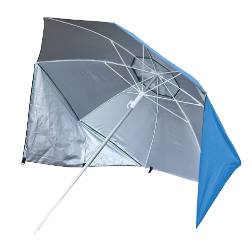 Цвят: светло син Включително транспортна чанта с колан за носене Материал на чадъра: алуминий, полиестер, фибростъкло Структура UPF защитен фактор 50+ Височина: 140 см.