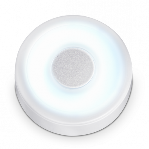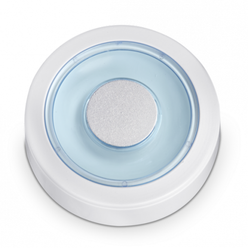 2-в-1 LED лампа за повърхностен или вграден монтаж. Отделима инкрустация в бледо синьо. Хомогенна светлина. Патентован дизайн - може да се затъмнява и включва или изключва просто чрез докосване на корпуса.