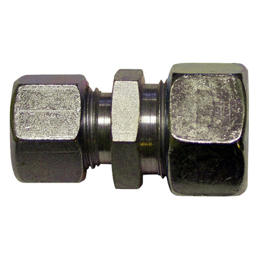 Фитинг с режещ пръстен от поцинкована стомана за газова тръба.