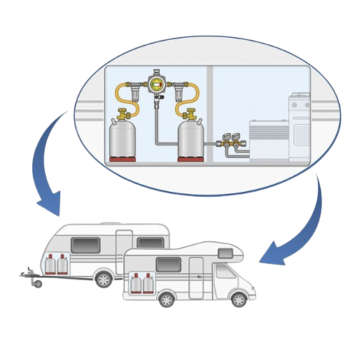 Автоматичен превключващ вентил GOK с вграден регулатор за ниско налягане за система с две бутилки за свързване към газови бутилки чрез маркуч за високо налягане за регулиране на налягането до номиналното налягане на газовия уред.
