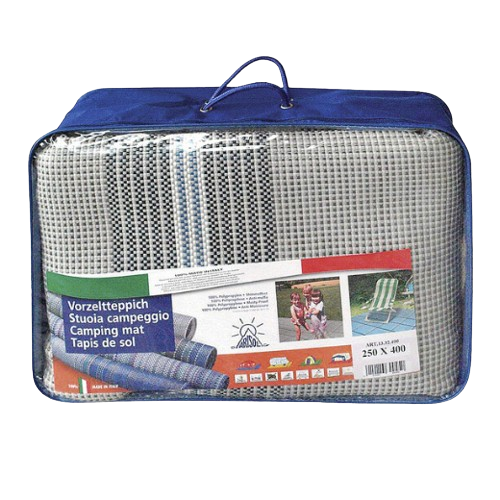Идеалният килим за шатри, тенти, тераси и балкони. Изработена от издръжлива полипропиленова тъкан с лента, тежи прибл. 500 g/m².