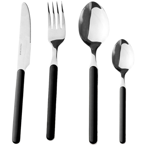 Цвят: черен Тегло: 0.68 кг. Материал: Неръждаема стомана Тип продукт: Комплект прибори за хранене