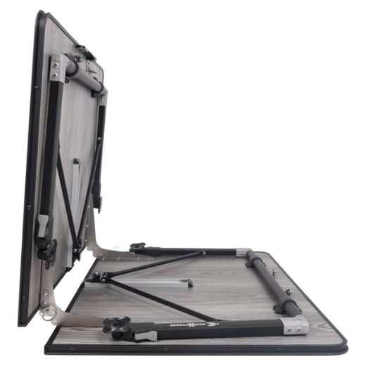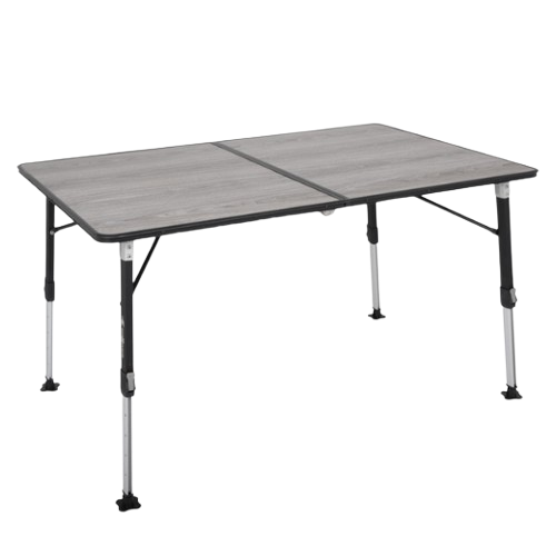 Цвят: Сив Тегло: 7.5 кг. Тип продукт: Сгъваема маса Материал на рамката: Алуминий Максимална височина на масата: 70 см. Мин. височина на масата: 42 см. Форма: Правоъгълна Характеристики: Сгъваема, регулируема височина Ширина: 120 см. Височина: 42 см. Дълбочина: 60 см.