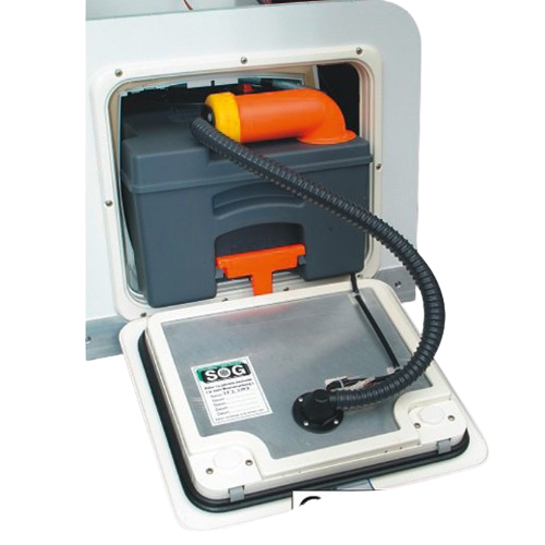 Работи със специално проектиран мощен изпускателен вентилатор.